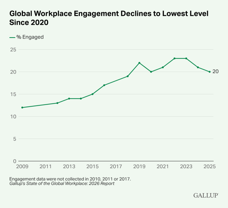 1. Global Workplace Engagement Declines to Lowest Level Since 2020