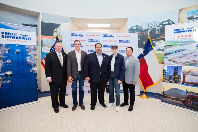 From left in photo above: BND Secretary John Reed, BND Commissioner Ernesto Gutierrez, BND Chairman Esteban “Steve” Guerra, BND Commissioner John Wood and BND Vice Chairman Sergio Tito Lopez stand united for the announcement of the America First Refinery Project at the Port of Brownsville Administration Office on Wednesday, Mar. 11.