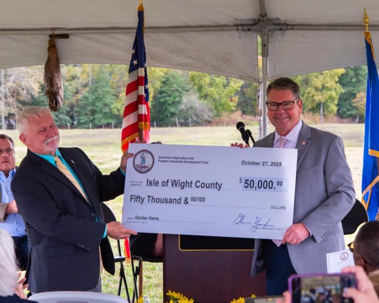 The Virginia Department of Agriculture and Consumer Services worked with Isle of Wight County to help fund this project. Governor Youngkin approved a $50,000 facility grant from the Governor’s Agriculture and Forestry Industries Development Fund, which Isle of Wight County will match with local funds.